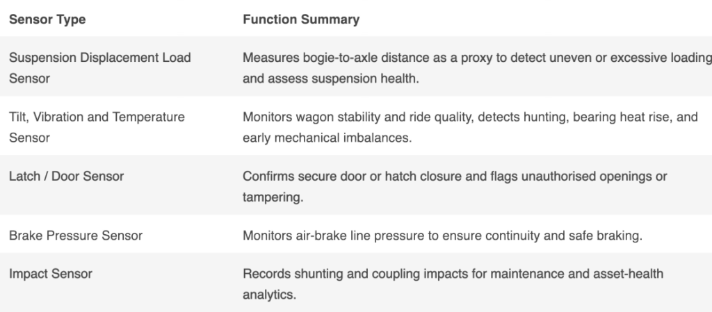 WagonLink™ gateway connects a suite of Smart Sensors that transform every freight wagon into a self-diagnosing, condition-aware asset. Each sensor communicates wirelessly with WagonLink™, creating a digital ecosystem that continuously monitors wagon health, safety, and performance.